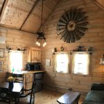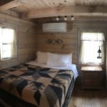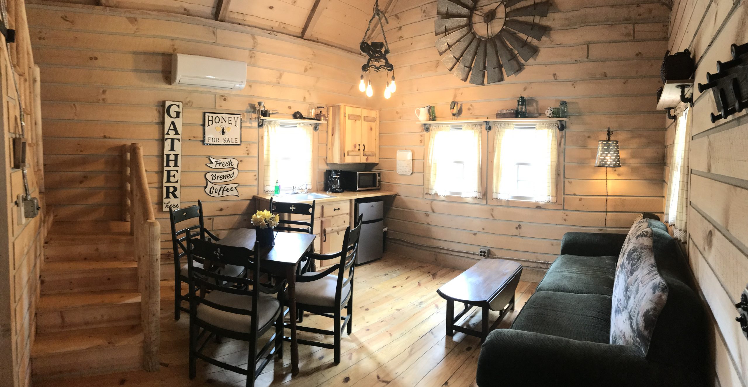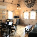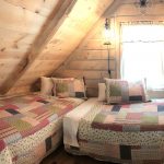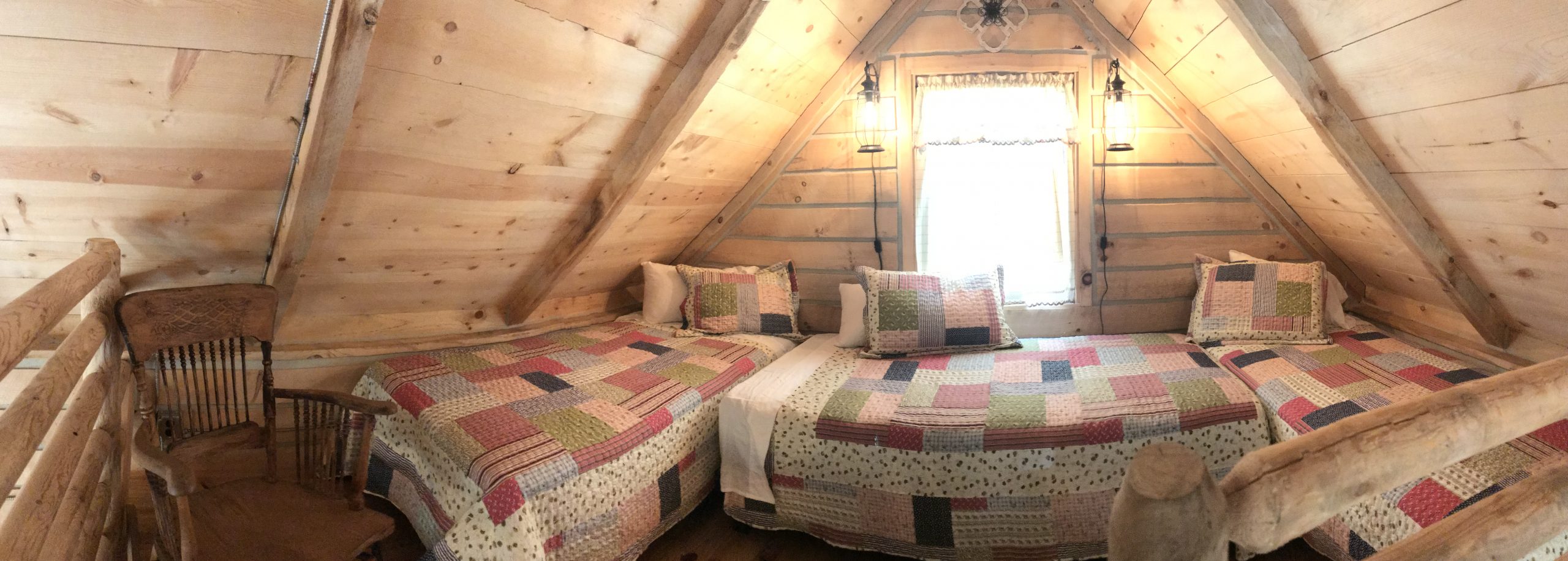 This cabin features one private bedroom with a queen bed, and three twin beds upstairs in the open loft. Lovely handmade lighting complements the rustic décor. Sleeps 5. This cabin is pet friendly. Please bring something as a sofa cover to prevent pet hair build-up. Dogs must be leashed, cleaned up after, and crated when you are not present.  (Rates vary by season and weeknight/weekend)