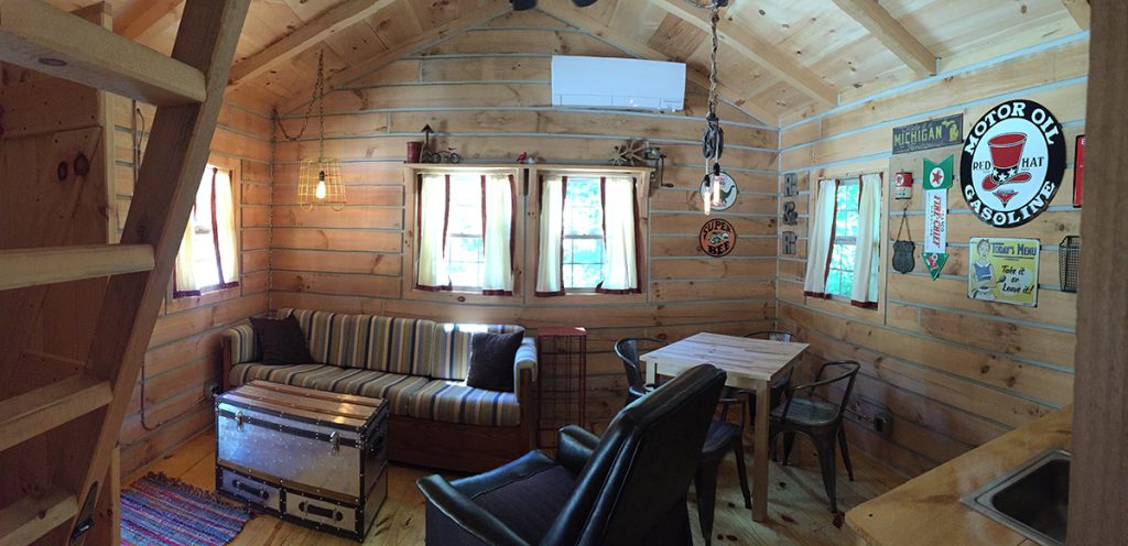 - Amenities: Air conditioner, Bathroom with Shower, Ceiling Fans, Charcoal Grill, Coffee Pot, Covered Porches, Fire Pit & Picnic Tables, Free high speed Wi-Fi, Heat, Linens & Towels Provided, Microwave, Mini Fridge, Pet Friendly, Toaster