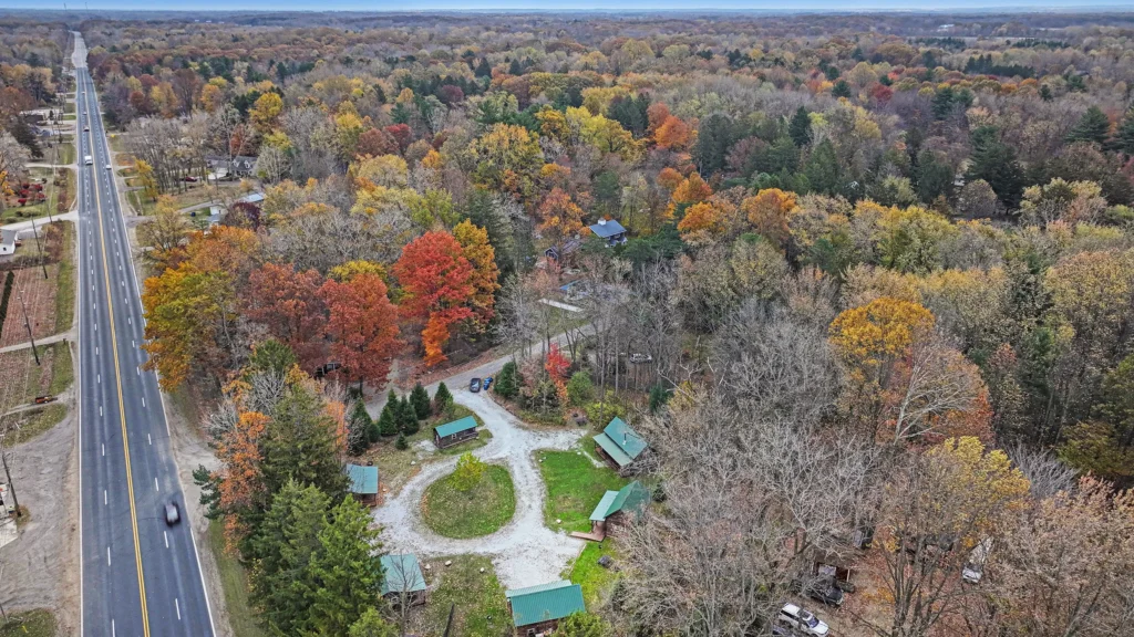Cabins are spaced apart with comfortable distance—social if you’d like, peaceful when you don’t. You’ll have your own covered porch, charcoal grill, and space to unwind.